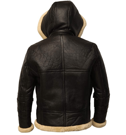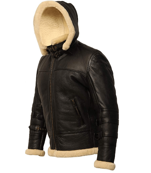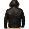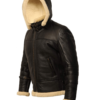 B3 Black Bomber Real Shearling Leather Jacket Removable Hooded