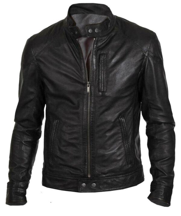 Want to update your outlook? Then grab this men’s black biker Jacket. Made from the high-quality real leather, this stylish attire will give you a new fashion approach. The smart look of this black belted leather jacket made it an exceptional outerwear for the bikers. Plus it’s an ideal outerwear for those fashioners who want to add something unique to their casual look.