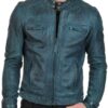 MEN’S BIKER VINTAGE CAFE RACER TEAL WAXED LEATHER FASHION JACKET