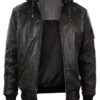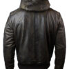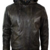 MEN’S Dark BROWN WASHED DISTRESSED REMOVABLE HOOD BOMBER QUILTED LEATHER JACKET