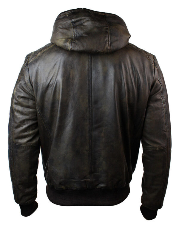 This is brown vintage leather jacket created from distressed goat leather material. The distinct features of this jacket include the removable hood and the quilted design which is all over the shoulders and the sleeves. The cuffs and the waist are elasticized and this leather jacket is available in brown color. The inner material is soft in touch and this jacket has been tailored with much attention and no details have been missed out.  ( Free Gift With Every Order )