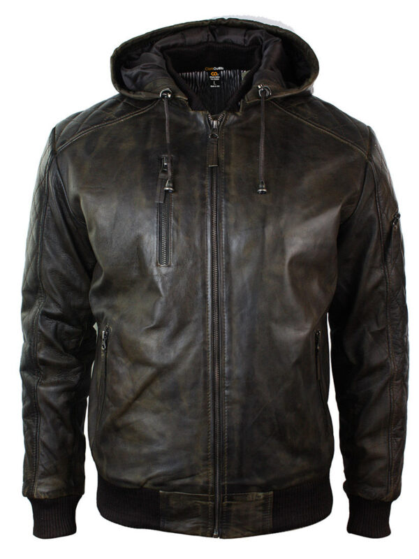 Be the first to review “MEN’S Dark BROWN WASHED DISTRESSED REMOVABLE HOOD BOMBER QUILTED LEATHER JACKET”