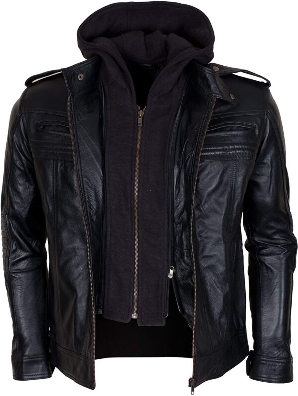 MEN’S DETACHABLE HOODED AJ STYLES LEATHER WWE TNA JACKET CHEAP. This AJ Styles leather TNA jacket for men’s is made from best quality genuine Leather, the jacket is an end product of highly durable stitching. The jacket is feature with two capacious zipped chest pockets and 2 additional zipped hand pockets with zip closure on the front, the jacket is of complete black color with leather made detachable hoodie. The jacket interior is made up of extremely soft leather stuff that will give you warmth and comfort that is also augmented with polyester lining. So Order this jacket now and avail limited time discounted offer with free delivery worldwide and consumer friendly return & exchange policy. ( Free Delivery With Every Order )