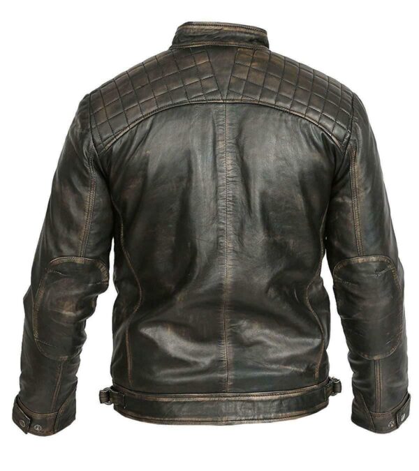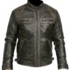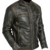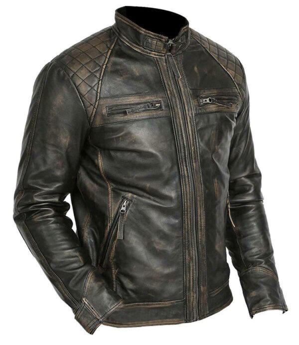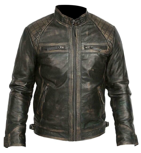 Men’s Distressed Vintage Retro Style Zipped Biker Jacket Real Leather Soft Casual