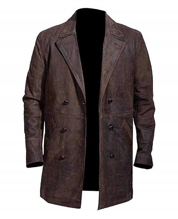 Admire a unique and elegant style from the famous drama serial of 2013 “The Day of The Doctor”. The late English actor left a remarkable style impression on his fans with this incredible coat jacket. It carries unique features to amplify your persona with a gorgeous look. This John Hurt outfit has been made with top quality genuine leather in an attractive brown color. An inner viscose lining makes it more comfy and durable. It has a lapel style collar with a double breasted front button closure to add utmost grace. Its long length and sleeves with open hem cuffs enhance the decency furthermore.
