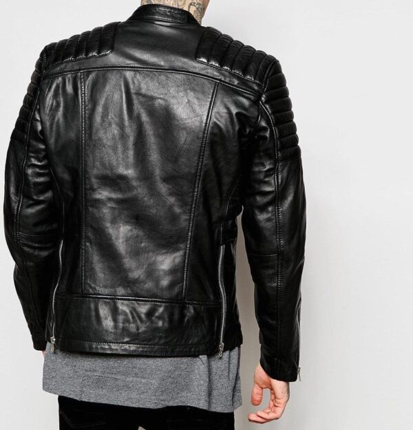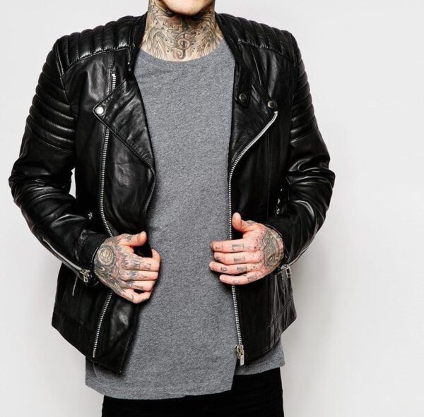 You’ve got to admire the unmatched design of this motorcycle style leather jacket that comes with a modern fit to give you an edgy look. Secondly, it’s made up genuine leather with supple characteristics and features like quilted viscose lining, zipper pockets, belted collar shoulder padding and much more. Grab now this magical eye catching attire into your wardrobe.
