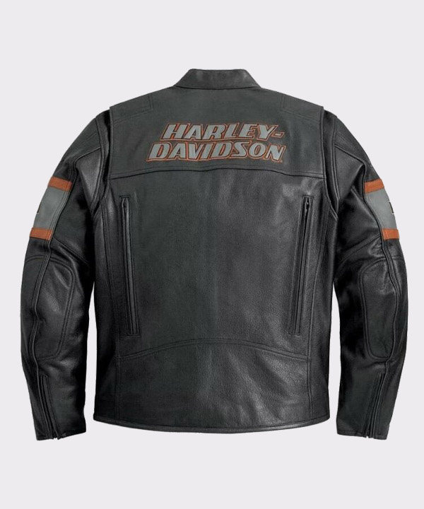Men’s Harley Davidson. Mid-weight distressed cowhide leather for the vintage look with a polyester taffeta body and sleeve lining. Strategically placed perforated side panels with windproof interior panels that block air or unzip to allow airflow. Get it one for you & enjoy your ride.