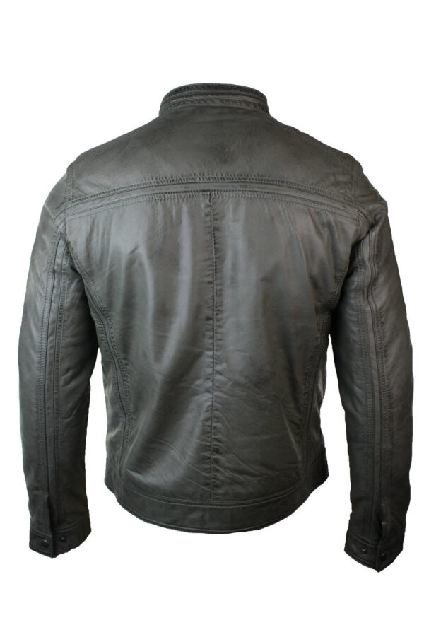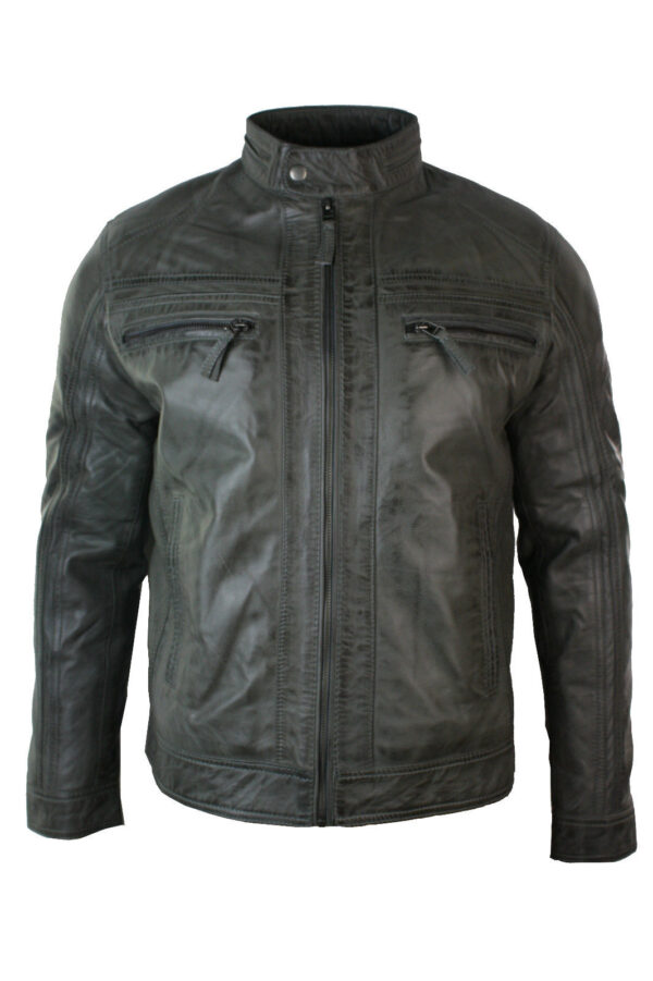 Men’s Retro Style Zipped Biker Jacket Real Leather Soft Grey Vintage Smart Casual