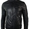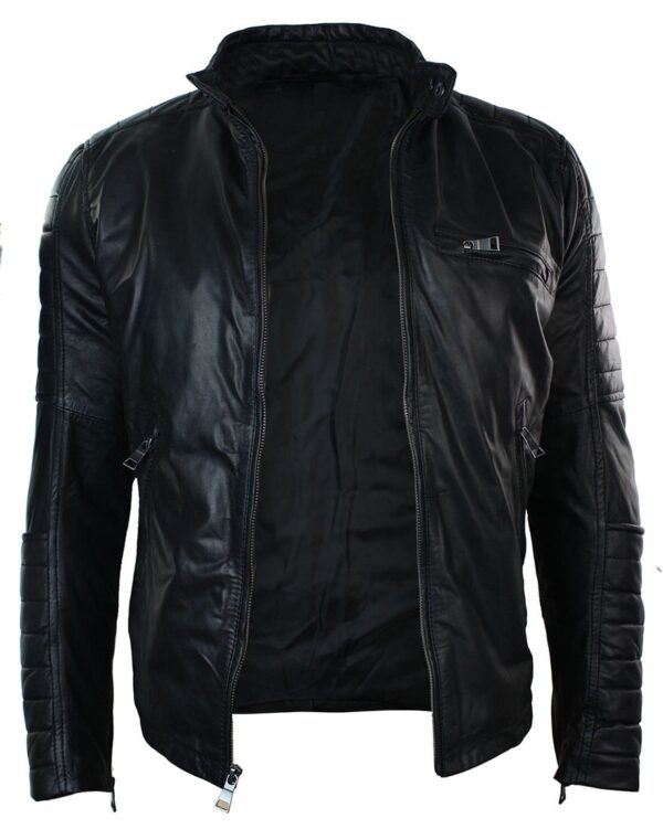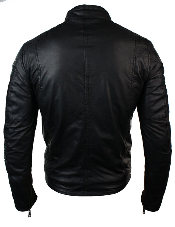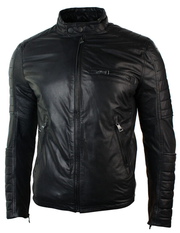 MEN’S SLIM FIT BLACK WASHED REAL LEATHER BIKER JACKET ZIPPED PADDED DESIGN RETRO