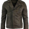 MEN’S SLIM FIT CROSS ZIP RETRO VINTAGE BRANDO REAL LEATHER JACKET