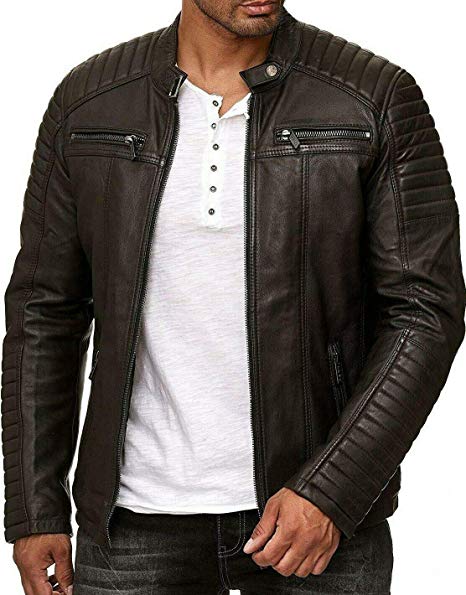 MENS VINTAGE CAFE RACER GENUINE LEATHER SLIM FIT REAL BIKER JACKET