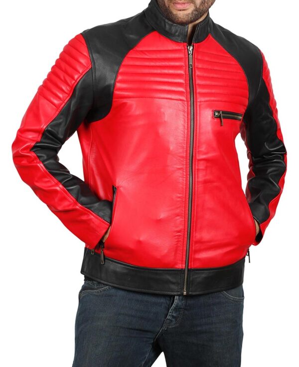 The Men’s Red and Black Leather Jacket is the bona fide style for your journey to look great and colorful. A genuine leather piece with details that will leave a great impression. Features front and shoulder padded linings that creates a unique sense of style. Also, includes three zip pockets for safe keeping. ( Free Gift With Every Order )