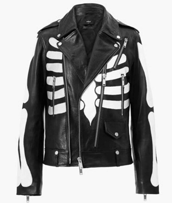 The AXL Rose Skeleton Biker Back Leather Jacket is made from genuine leather. It is available in a beautiful black color that gives the jacket an elegant and stylish appearance. The AXL Rose Skeleton Leather Jacket has a lapel-style collar with a front zipper closure. There is a skeleton leather on the front and back of the jacket. The inner lining of the jacket is made of soft viscose, providing comfort to the wearer. The jacket has long and fitting sleeves with zipper cuffs. For storage, there are multiple front zipper pockets, making this jacket even more likable. The superior quality stitching makes this stunning jacket durable to wear. The AXL Rose Skeleton Biker Back Leather Jacket is the choice of stylish men.