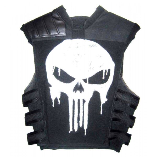 This black genuine real leather vest is one of a kind. It is designed and handmade by our artisans with the best quality in mind. We use the best Genuine Real Leather and state-of-the-art stitching to give the vest the most badass look. Stand Up collar and full zipper front features ensure an avant-garde look for the wearer. It is also donned with belt cuffs on the side, and The Punisher signature skull image on front, which will surely be an eye catcher. The sleeveless design makes the vest perfect for a casual event. This vest is a must-have for anyone who is a Punisher’s fan.