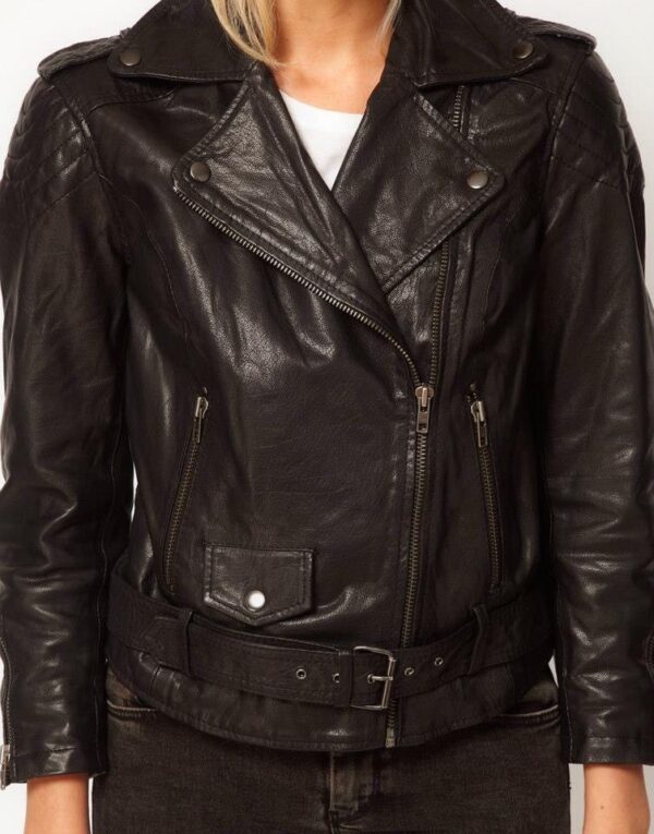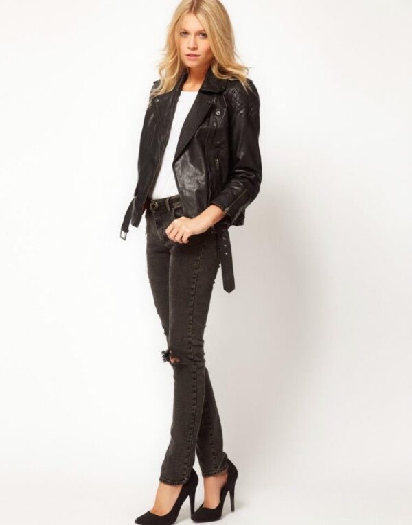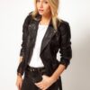 Women Leather Jacket Black Slim Fit Biker Motorcycle Jacket Size