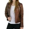 Develop the style you desire with this round collar brown jacket for women, also known as the outclass outfit for fashionista girls. Construction with genuine leather, which makes it stronger, and the internal lining is of viscose for a comfy feeling. Other features are central straight zip fastening and three zipper waist pockets for storage. ( Free Gift With Every Order )