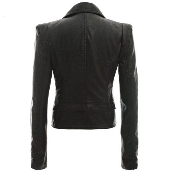 Brand New Womens Moto Biker Slim Fit Black Leather Jacket