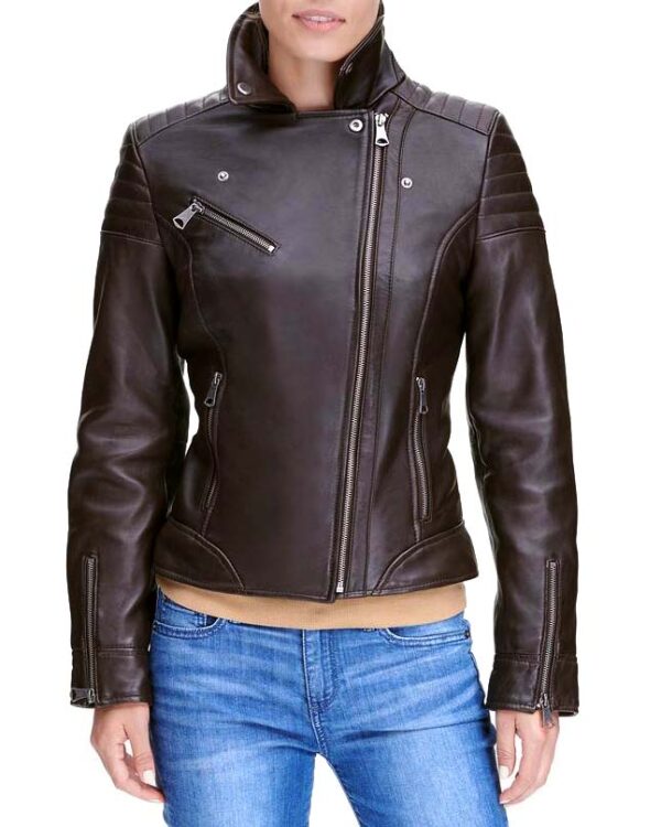 Women’s Leather Bridge Dark Brown Genuine Lambskin Leather Jacket