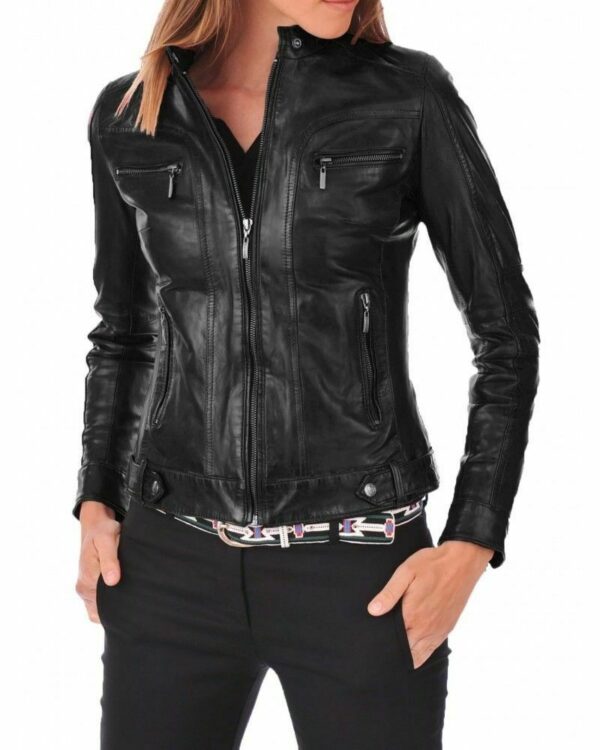 Women’s Leather Jacket Genuine Soft Lambskin Real Biker Motorcycle Slim Fit Coat