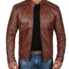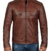 MEN’S CAFE RACER DISTRESSED BROWN REAL LAMBSKIN LEATHER JACKET